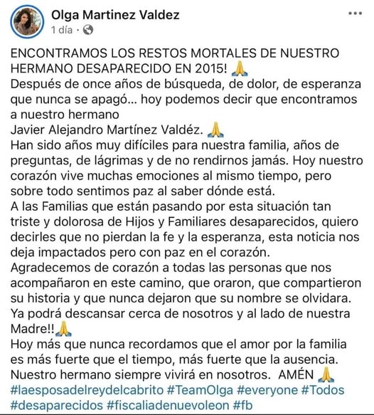 Tras 11 largos años de incertidumbre, la búsqueda de la familia Martínez Valdez ha llegado a su fin.